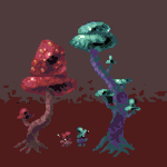 A few mushrooms (hello carmen) #pixelart #pixelartist #ドット絵 #mushroom