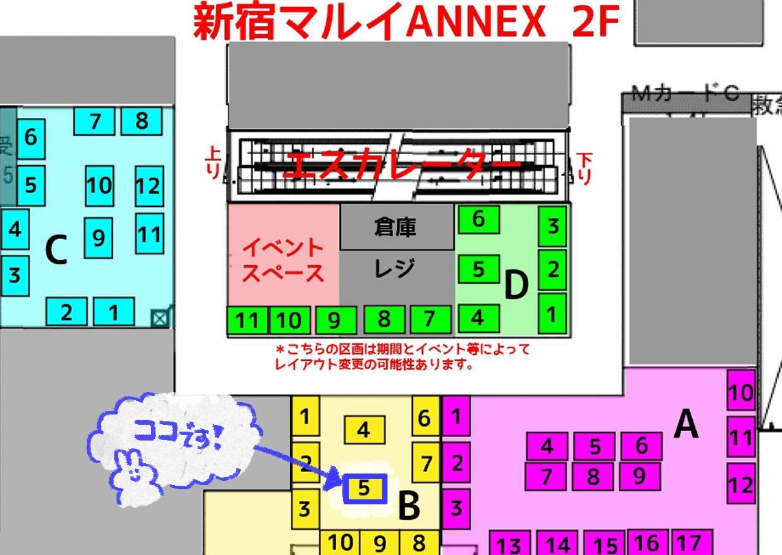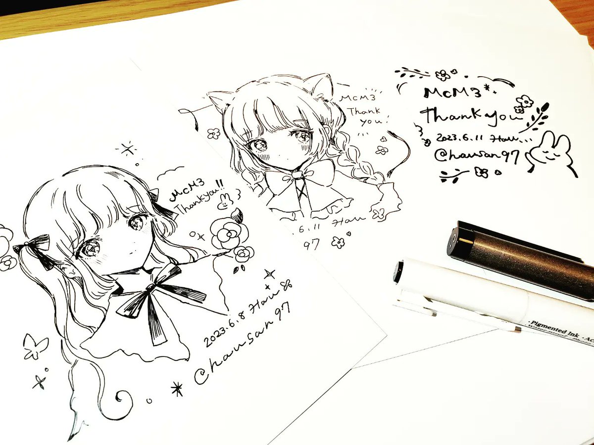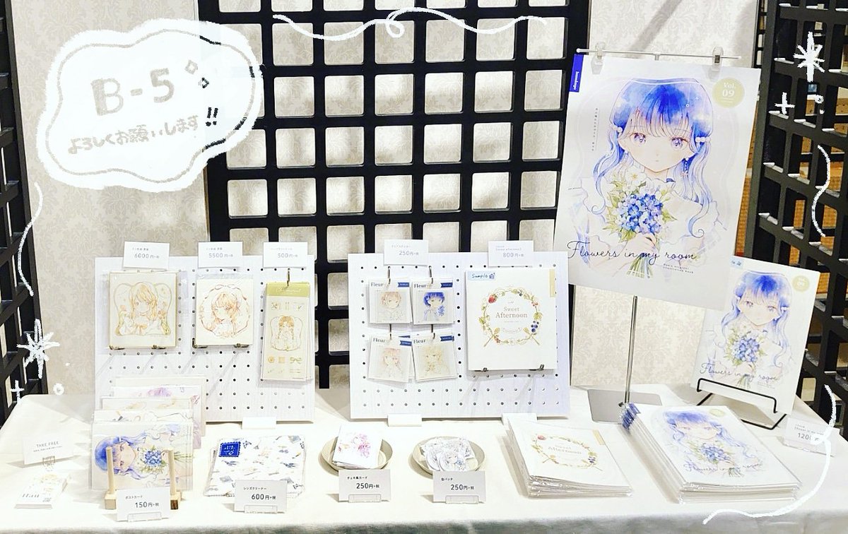 すごく素敵に設営していただきました、ありがとうございますꕤ.。.:* スペースは【B-5】です。 抽選でもらえる特典のポスカも描きました! ご縁がありますように😊✨️ 明日からどうぞよろしくお願いします! #MCM3 twitter.com/hausan97/statu…
