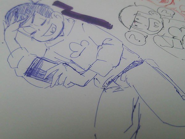 0 4 昨日通話してた時に描いてた(二)十代 原作意識してひょろひょろにしたかったけど胴長になっただけの悲しきらくがき 22/06/15 07:48