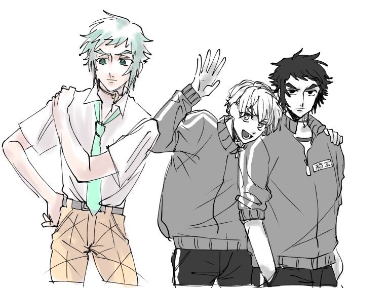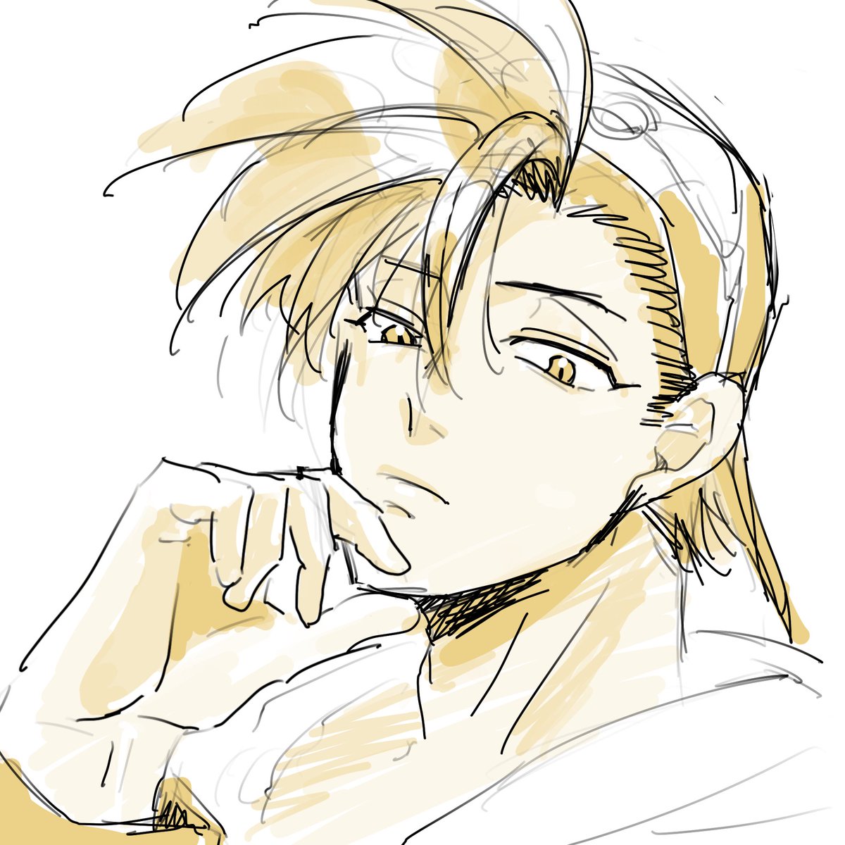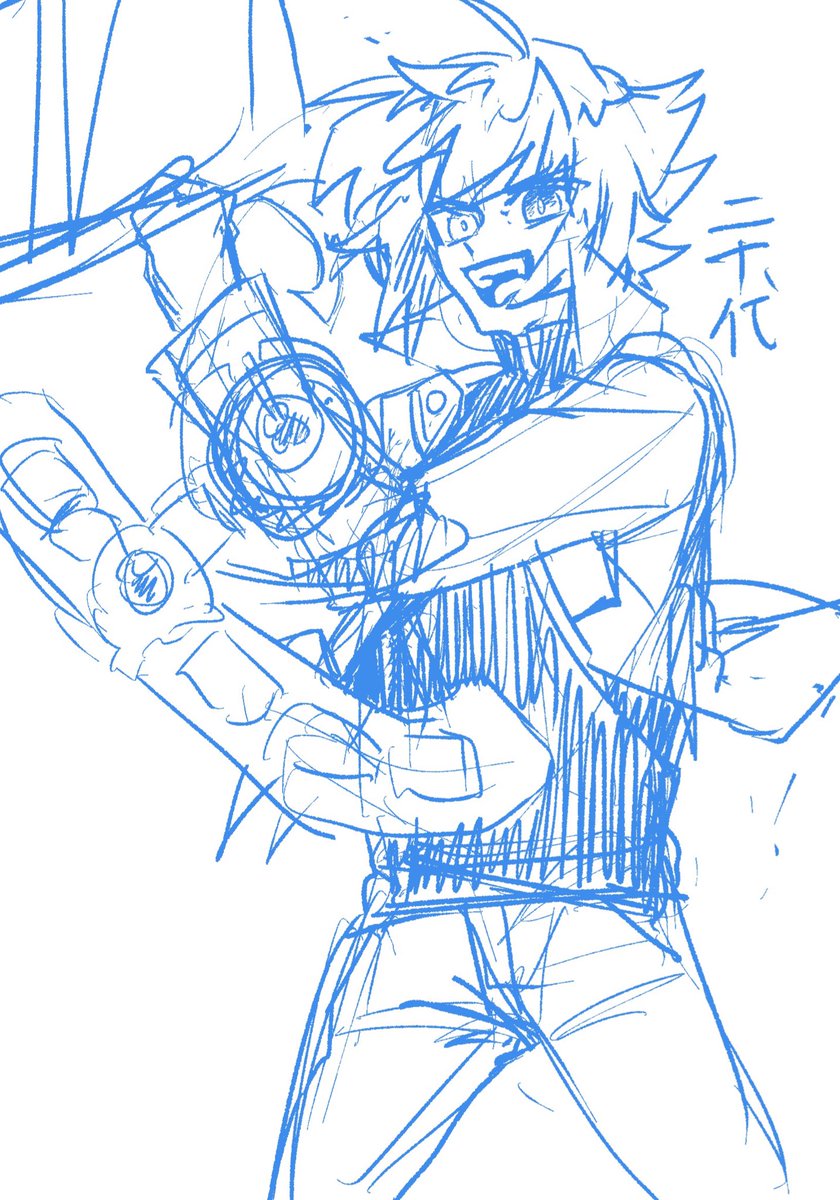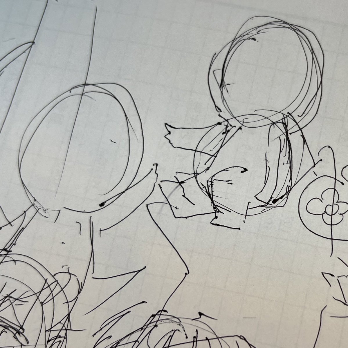 昨日通話してた時に描いてた(二)十代 原作意識してひょろひょろにしたかったけど胴長になっただけの悲しきらくがき