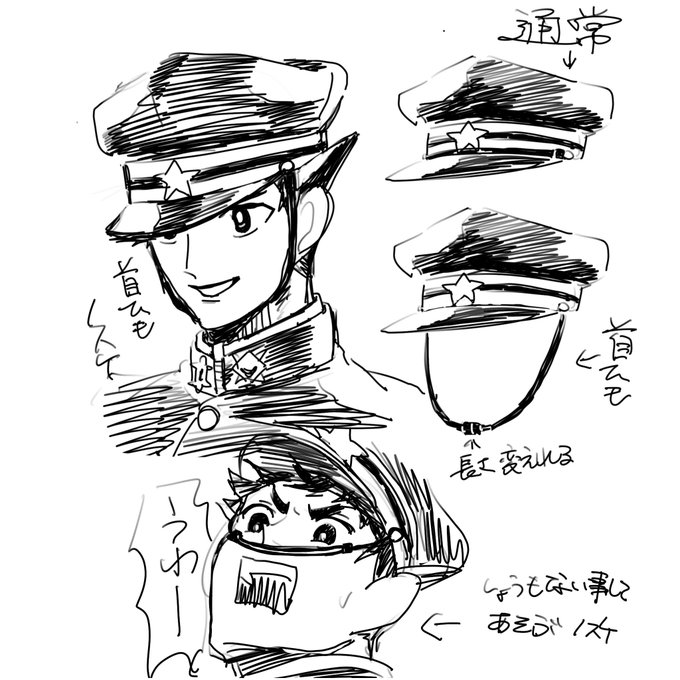 1 10 こっちにもあげよう 学帽の仕組み落書き 首紐って書いたけど顎紐の間違いです…なんか覚え間違いしてるすみません 22/06/05 14:59