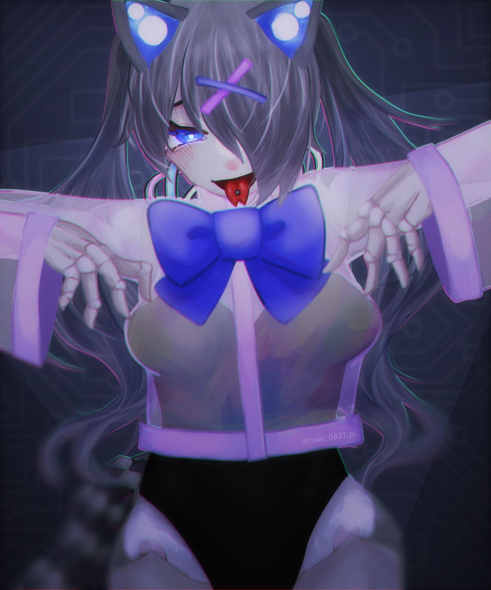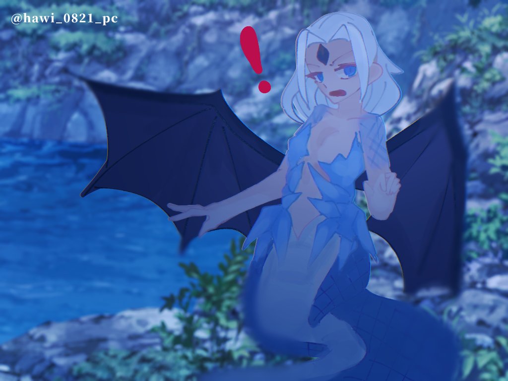 #人外版深夜の真剣お絵描き60分一本勝負 「スライム娘」「ゴーレム」をテーマに、スライムゴーレム娘ちゃんを描きました! 周りの黒いのは浮遊するゴーレムの腕のつもりです(もっと引きで描けばやかった…笑)