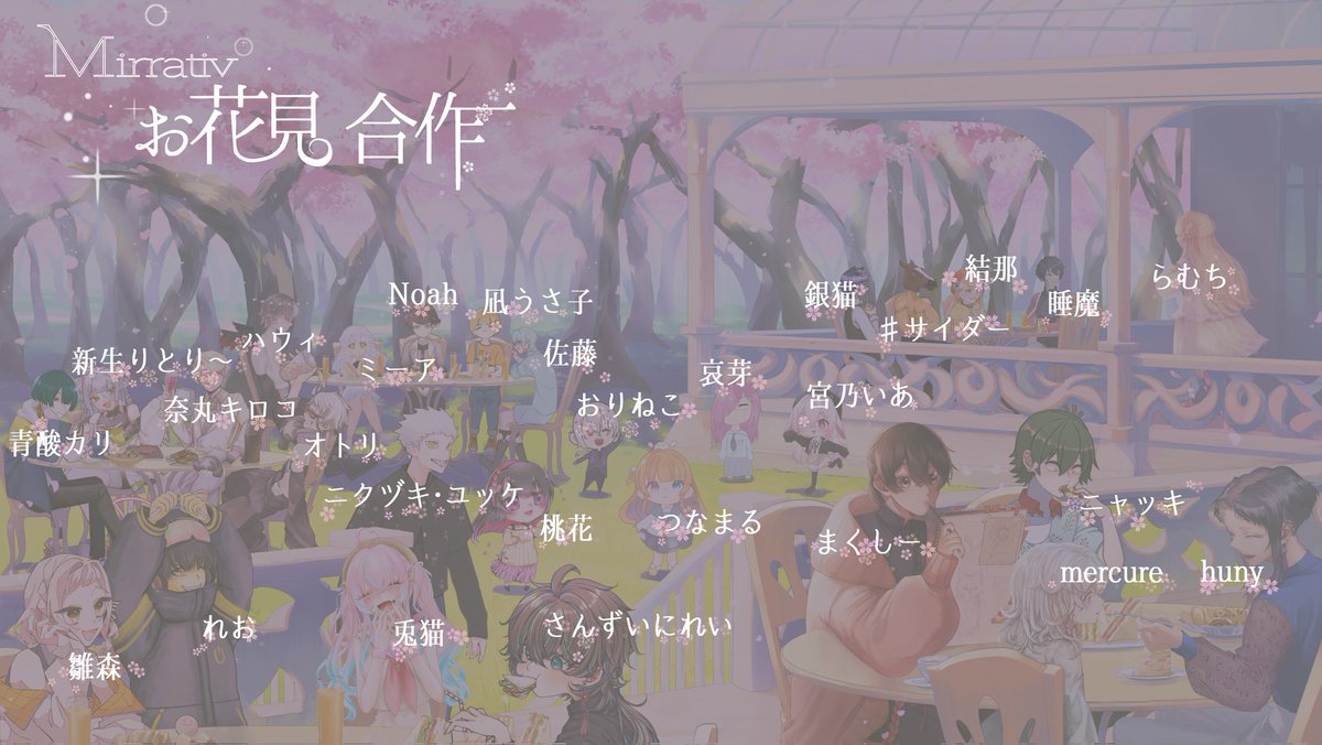 #Mirrativお花見合作 この度huny様主催のミラティブイラスト合作企画に参加させていただきました!🥰❤️ とても楽しく描かせてもらいました! huny様はじめ、参加された絵師様方に、たくさんのありがとうとお疲れ様をお伝えいたします!🙏