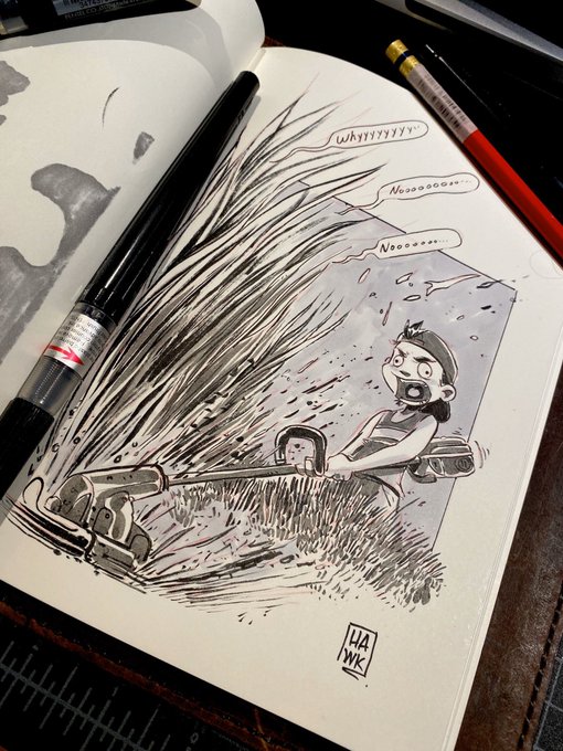 Inktober Day 14 - Overgrown We all have our darkest moments ... #inktober #inktober2019 #illustration #artwork #art #sketchbook #sketchbookdaily #dailyart #overgrown #yardwork #grass