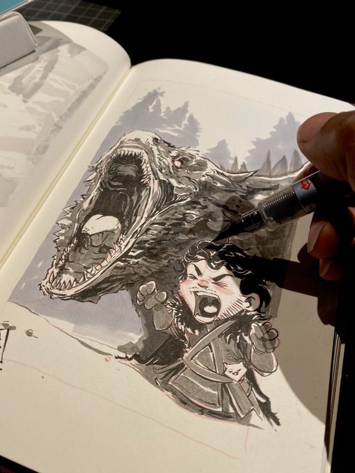 Inktober Day 27 - Ride If I had the time, I wouldn’t mind doing a short game of thrones webcomic: Adventures of Jon Snow and Ghost #inktober #inktober2019 #illustration #artwork #art #sketchbook #sketchbookdaily #dailyart #ride #jonsnow #gameofthrones