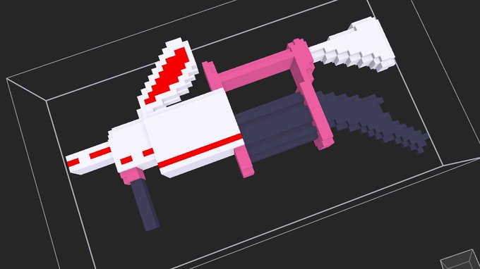 2 7 試しにオリジナルの銃をモデリングしてみた。 命名「ラビットランチャー(RL)」 跳弾の弾を撃つ銃(?) #voxelart #magicavoxel #カラクリメイド 21/07/18 18:16