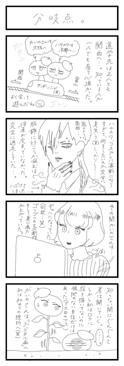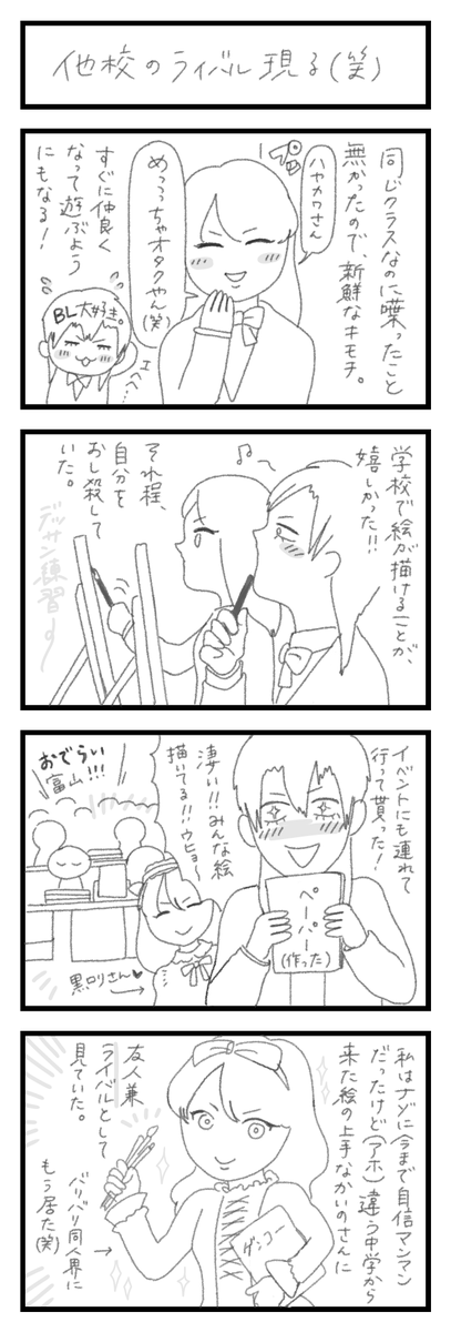 【イラストレーター物語(実話)】(1/2) エッセイ漫画です。高校の同級生に大物がいる話😂絵を描いている人にはとても響く話だと思います👍辛酸を舐めまくって今に至る😇高校生の頃の根拠のない自信改めてって才能だなと思う(笑)つづく #漫画が読めるハッシュタグ #四コマ漫画 #マンガ