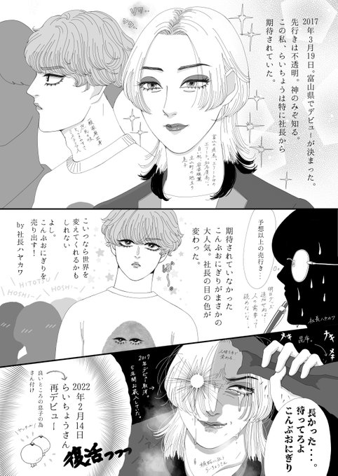 【🍙こんぶおにぎり夢?漫画🍙】 黙々と裏で描いていました✏️らいちょうさんのファン層とはまた違った感じ🤔苦手なSNSを頑張って更新しているおにぎり(笑)ファンに支えられています🍙 #こんらい #漫画が読めるハッシュタグ