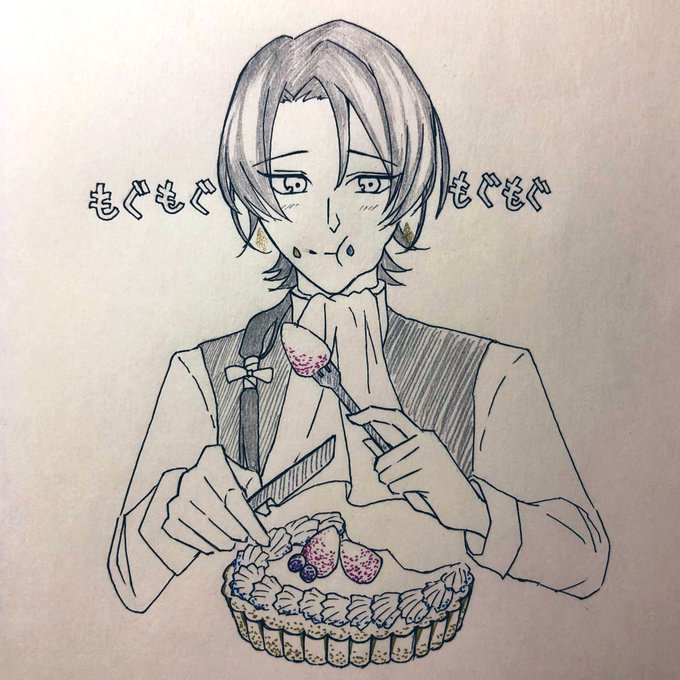 #100日チャレンジ #刀剣乱舞イラスト 8日目:ホールケーキを食べる清光