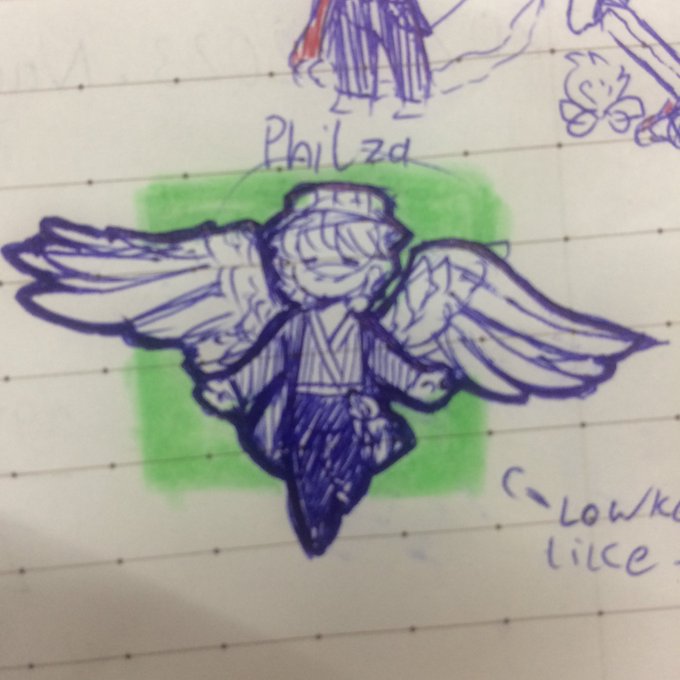 Idk why it's so blurry but I doodled some MCYT and Phil turned out amazing so here (wings a little crooked but that's fine) #philzafanart #mcytfanart