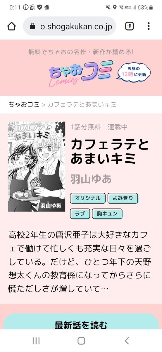 🥨お知らせ🥨 ちゃおコミにて新作読みきり 「カフェラテとあまいキミ」が配信中です!☕.◌* 久々のラブコメ楽しく描かせていただきました! 年下男子にキュンとしてもらえたら嬉しいです🥰 リンクから無料で読めますのでよろしくお願いします!🙏💕 ciao.shogakukan.co.jp/webwork/16371/ #ちゃおコミ