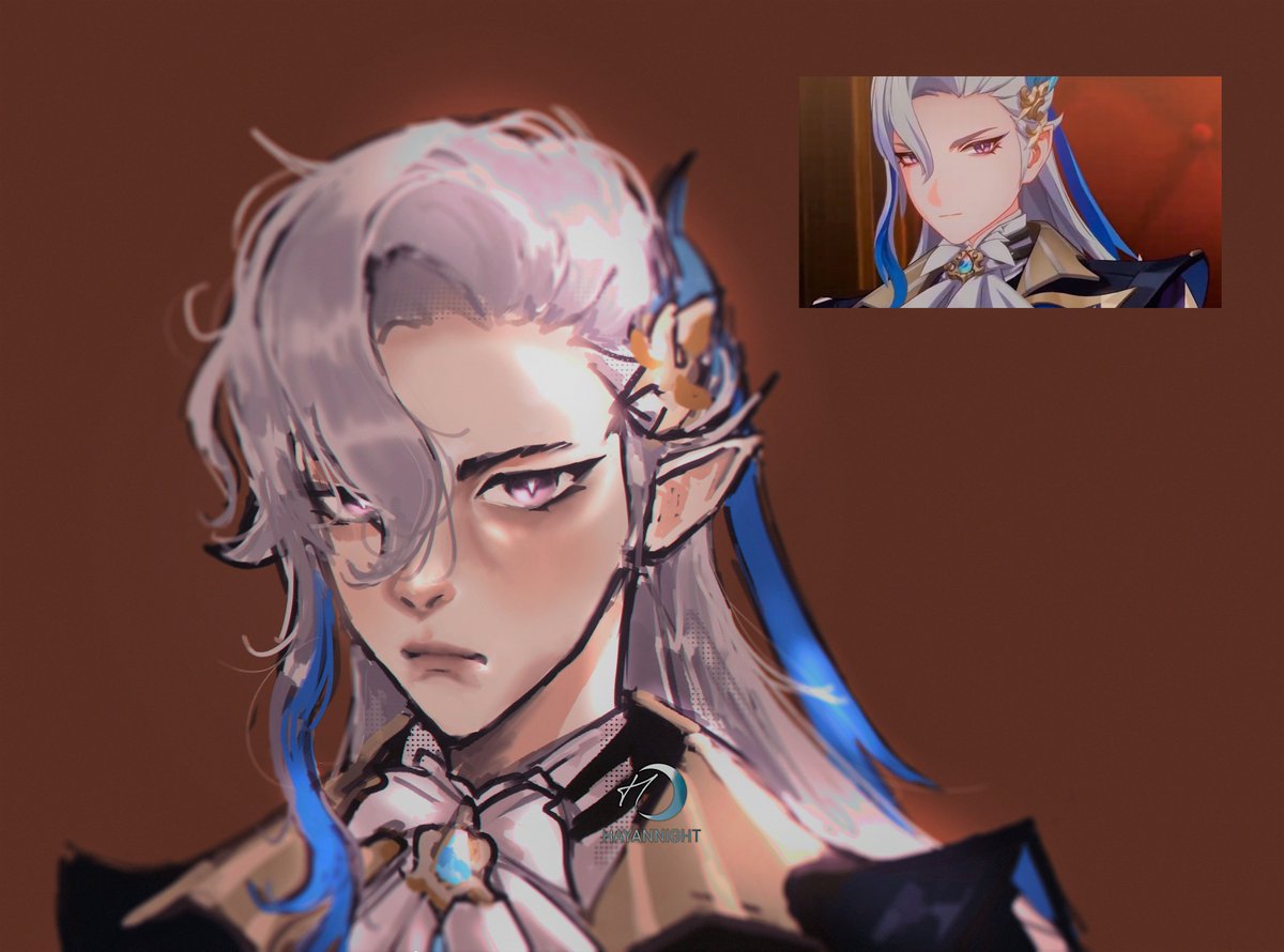trying out new rendering style and drawing a hot man~ #Neuvillette #GenshinImpact #原神 #HoYocreators #Genshinfanart