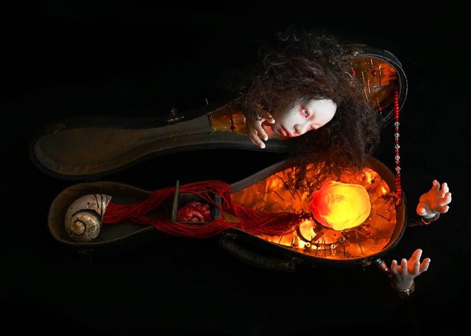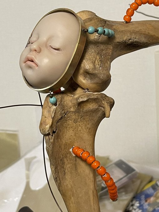 有楽町の東京交通会館B1ゴールドサロンで開催中の幻獣神話展Ⅹで「Bee」 と「アンモナイトの少女」を展示販売しています。8月14日までです。 span-art.com/genju/index.ht… 人形:林美登利 撮影:立木圭之介 #幻獣神話展 #幻獣神話展X