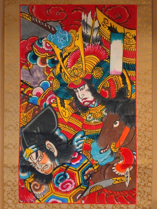 2 3 静岡県富士宮市「たこまん長屋門」で開催中の「迎春展―和凧と押絵羽子板―」より。昭和の凧絵師を代表する名人・橋本禎造氏の最晩年の作「頼朝初陣」(軸装)です。展示は1月8日まで。 #たこまん #凧絵師 #江戸凧 22/12/29 21:51
