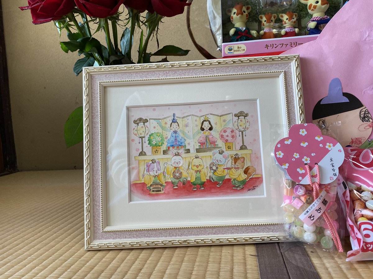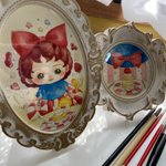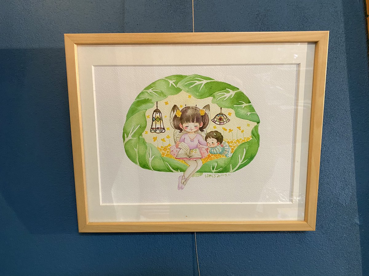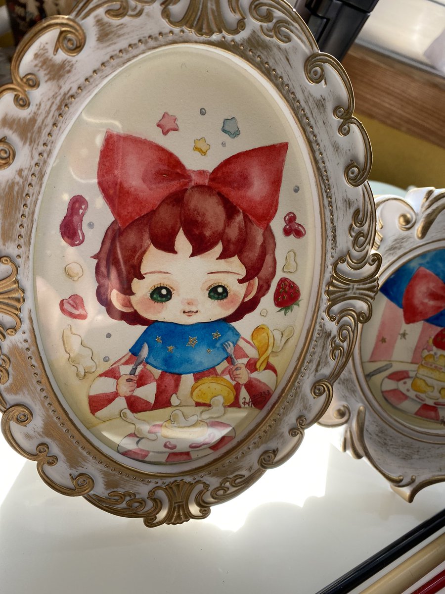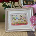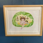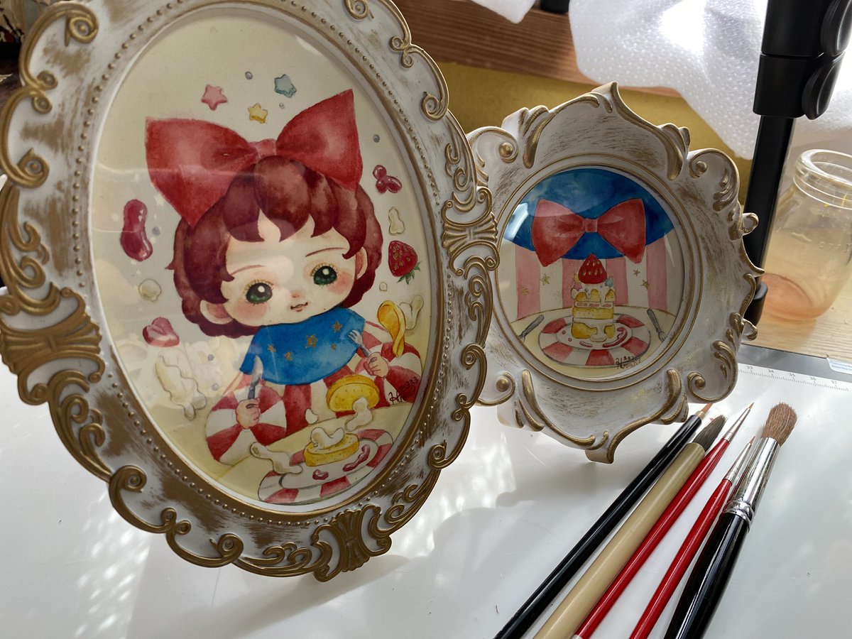 完成です✨ この額に入れるために丸い構図になっていました。私の一連の作品作りはこんな感じです。…が、時にはいきなり作品を作り出して、後から額がなくて困ったりします。今回は最初から合わせたので、ピッタリでした。 #水彩イラスト #イラストメイキング