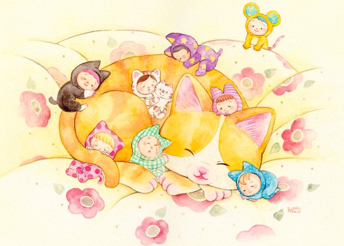 しあわせな時間をお届けです🐱 (🐭:起こしちゃおうかな…?) こちらは1/27(金)からのART HOUSE企画『2023しりとりアート駅伝』に出展します♪大阪のギャラリーさんです。よろしくお願いいたします。久しぶりの原画展示です♫ #イラストレーションの日2023 #illustration #cat #猫 #水彩画