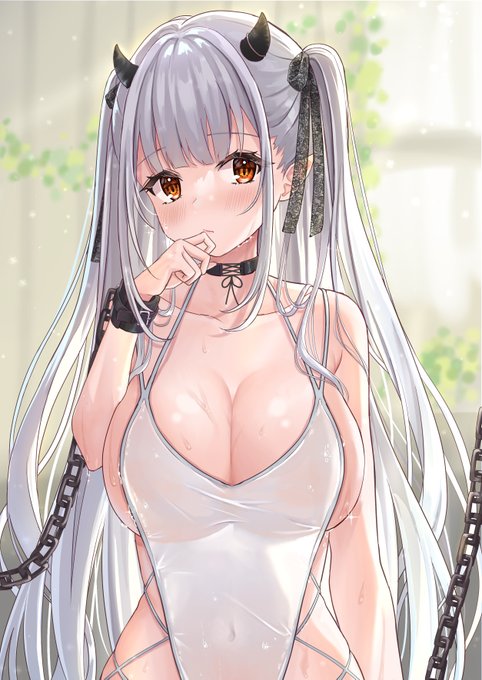 濡れえち白水着拘束巨乳ツノ娘(性癖盛り)