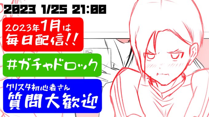 #絵描きさんと繋がりたい 【1月は毎日配信!】 本日(1/26木) よる9時から配信します ガチャドロック描いてます 【お絵描き寺子部屋】 クリスタ、イラスト初心者さんの質問も大歓迎 youtube.com/live/rrK53J5_O… ☆ガチャドロックとは lit.link/hayato69link
