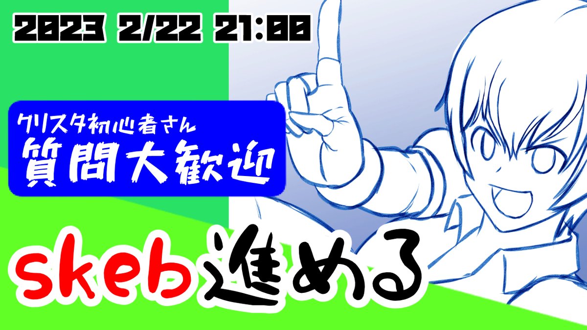 #絵描きさんと繋がりたい 本日(2/23木) よる9時から配信します skeb依頼絵描いていきます youtube.com/live/wLGcKes_0… 隼人ろっくのその他情報 xfolio.jp/portfolio/haya…
