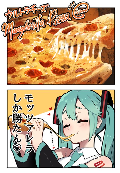 ミク「ピッツァ」 1/2 #イラスト #初音ミク