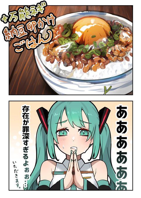 納豆卵かけご飯とミク 1/2 #イラスト #初音ミク