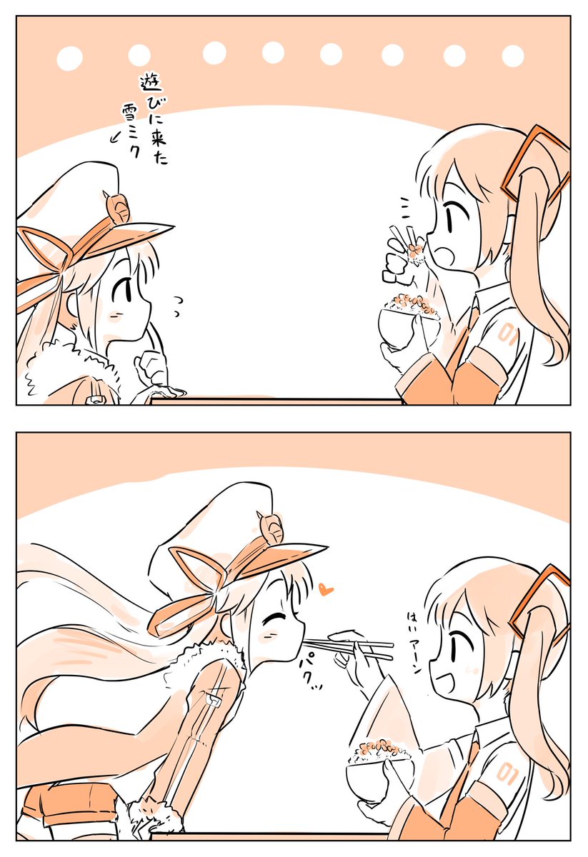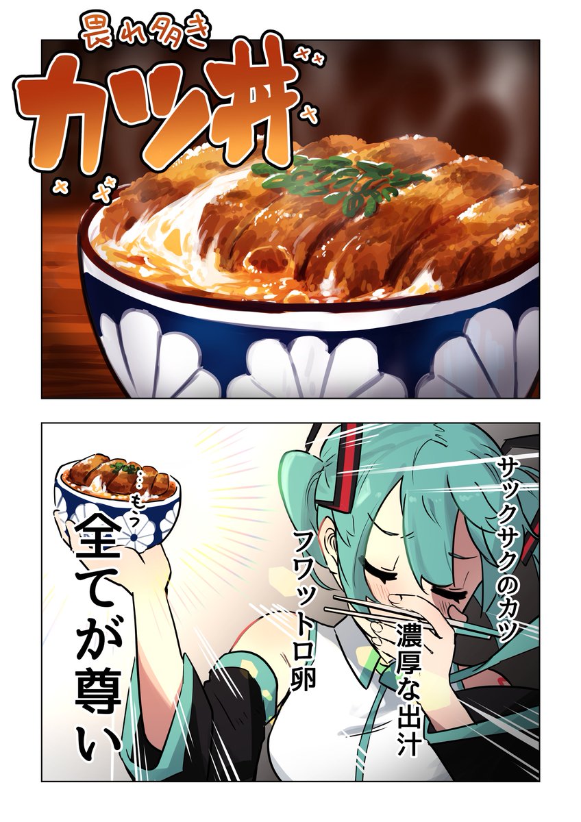 カツ丼とミク 1/2 #イラスト #初音ミク