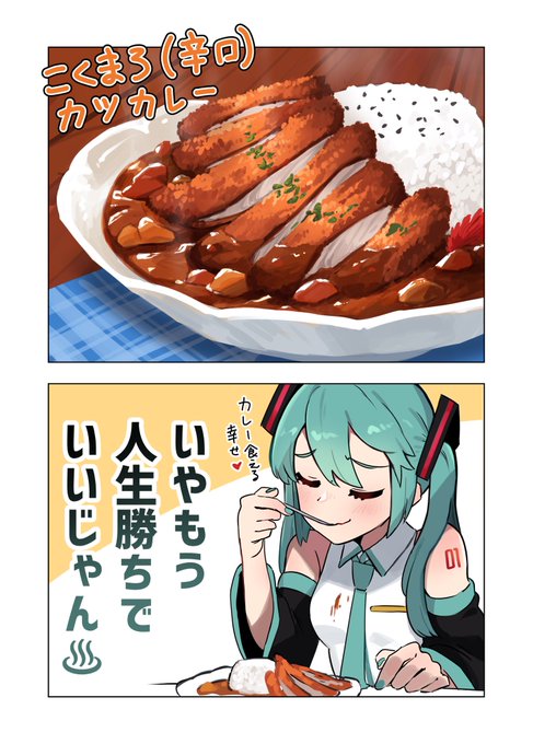 カツカレーとミク 1/2 #イラスト #初音ミク