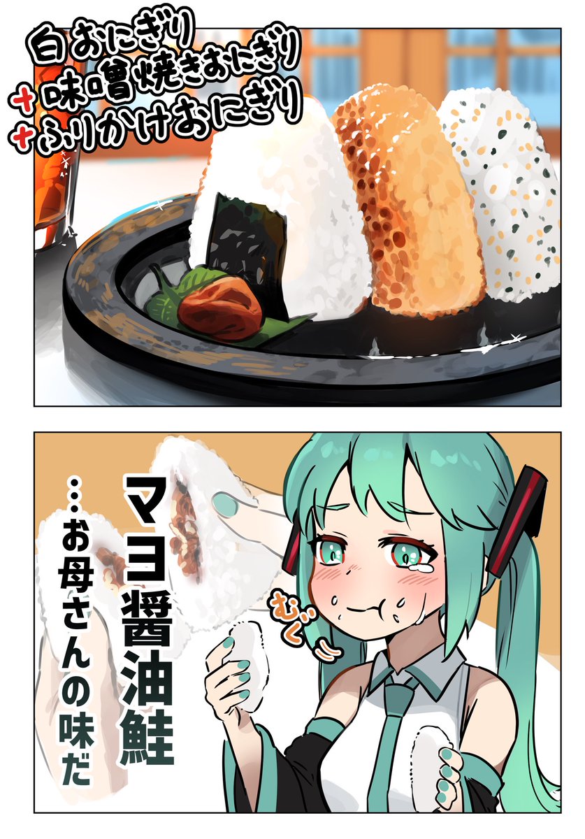 おにぎりとミク 1/2 #イラスト #初音ミク