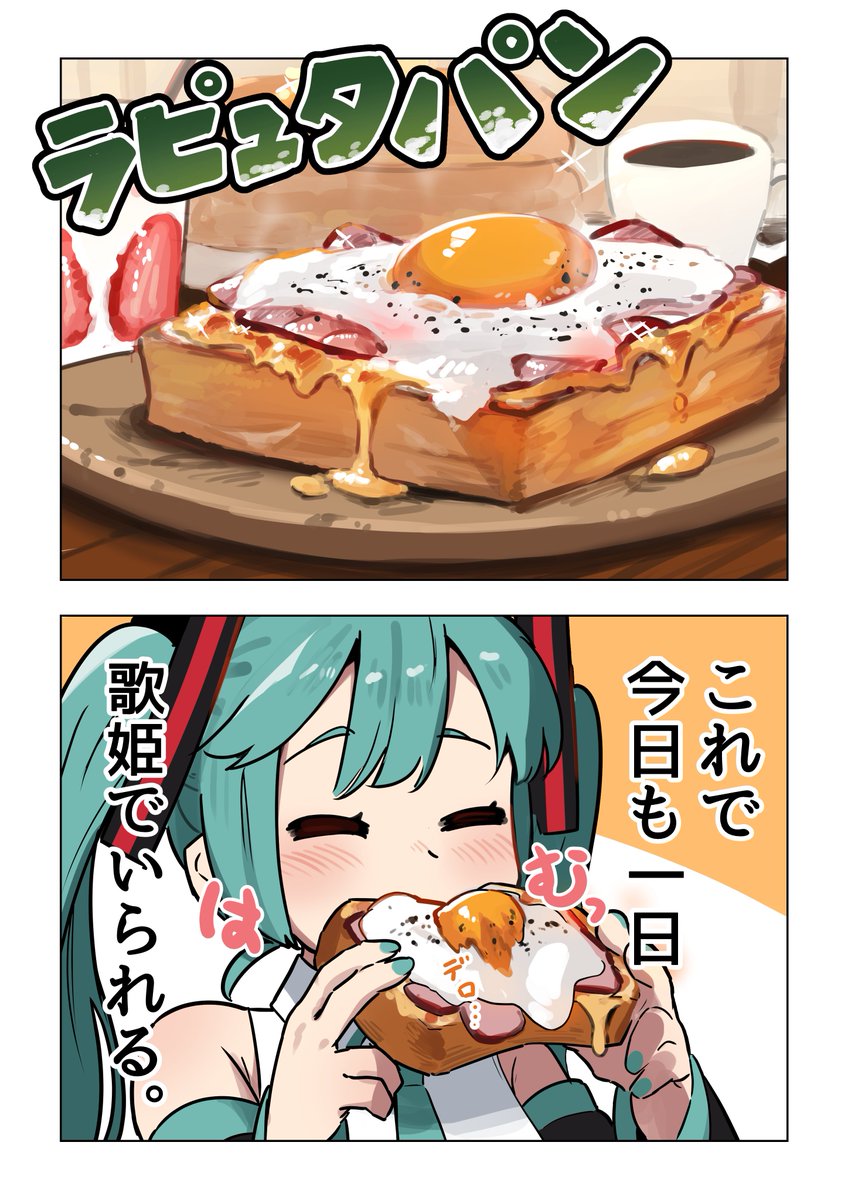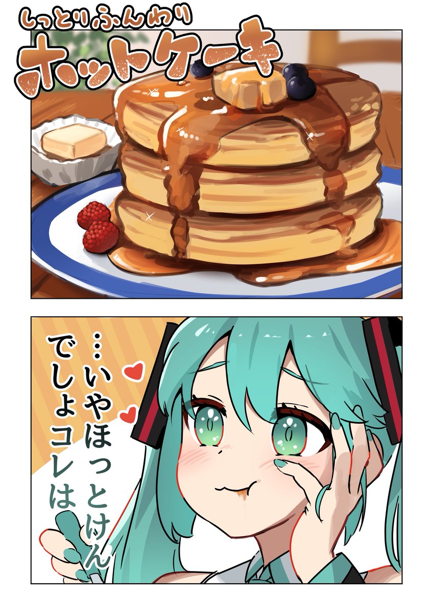 ホットケーキとミク 1/2 #初音ミク #イラスト