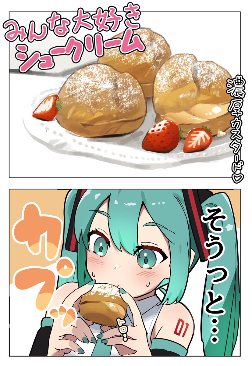 シュークリームとミク 1/2 #初音ミク #イラスト