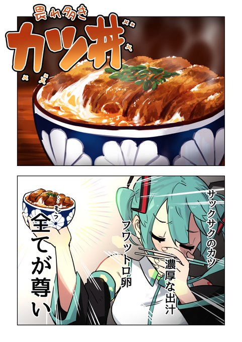 665 7558 カツ丼とミク 1/2 #イラスト #初音ミク 23/08/13 22:32