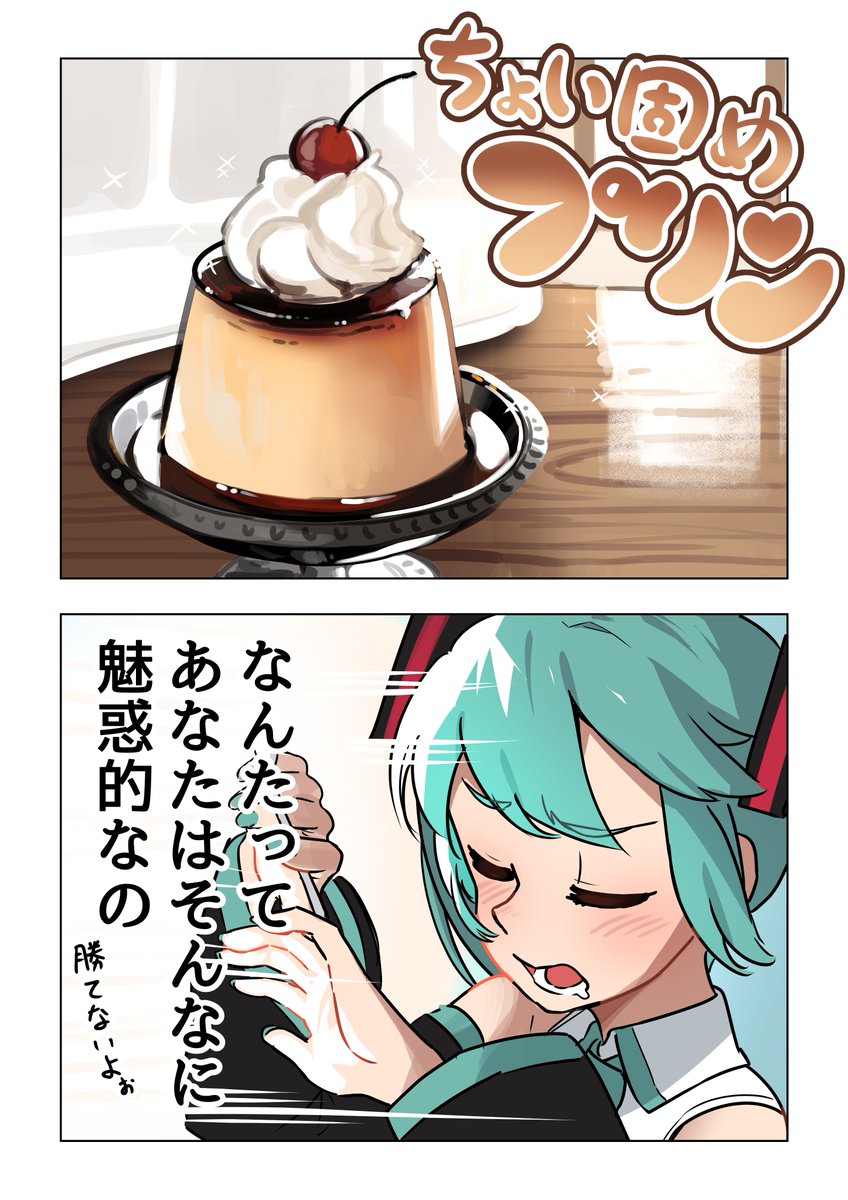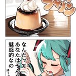プリンとミク 1/2 #初音ミク #イラスト