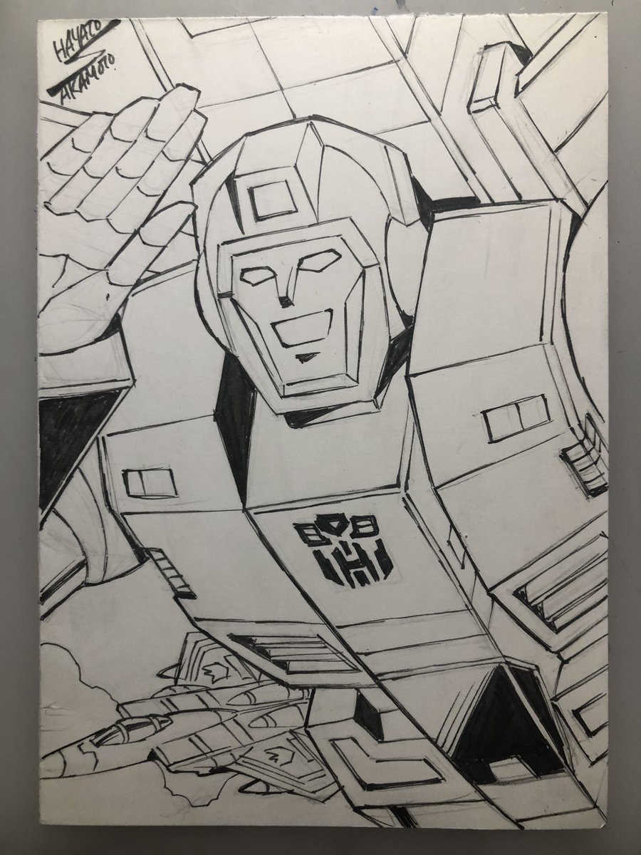 73 337 40枚目!スカイファイアー!この絵ではロボで飛んでますがアニメではロボ形態で飛べないよね。まあ1話でみんな飛んでるから飛ぼうと思えば飛べるんだろうけど・・ 23/07/05 21:55