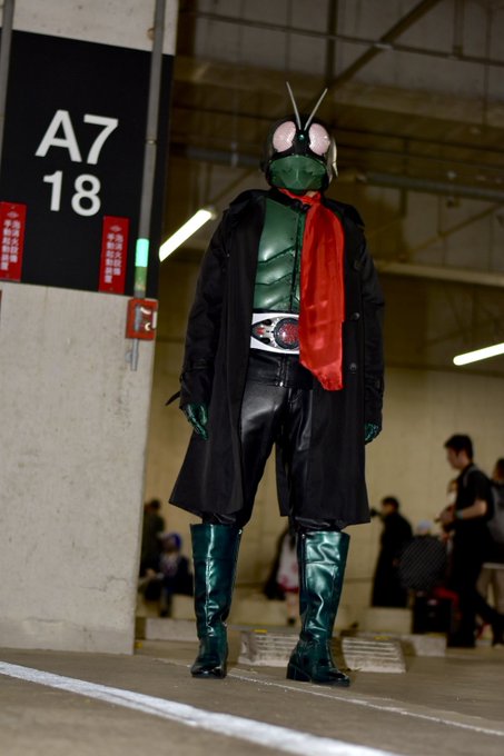 正面からの棒立ちだけど1番原作っぽくてお気に入りの一枚✨ コートとマフラーが最高にカッコいい… 📸: @uluti_mai #シン・仮面ライダー #アコスタ福岡PayPayドーム #アコスタ福岡