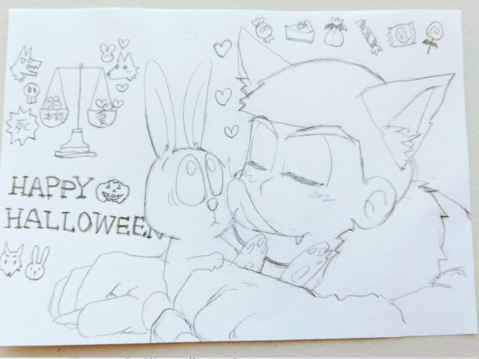 8 46 今描いた落書き🐺🐰 帰ったら仕上げようか…紙が小さすぎるから難しいけど、でもいい表情描けた気がする~ 22/10/19 11:05