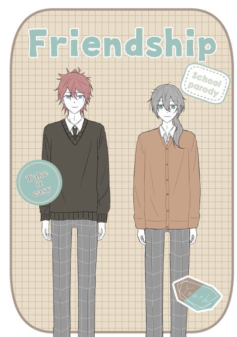 6/25 燐ニキ 新刊サンプル【む58a】(1/2) 『Friendship』 A5版/24P(多分)/300円 燐音とニキが同い年の学パロです。前半はギャグ、後半は燐音がずっと悩んでます。 長めサンプル:pixiv.net/artworks/10913… 通販はイベント後予定。ツリーの最後に部数アンケがあるのでご協力お願いいたします。