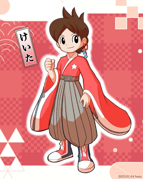 5 28 ケータくん 和服化 (※公式絵トレス) #妖怪ウォッチ #イラスト 23/01/05 15:43