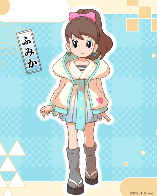 2 12 フミちゃん 和服化 (※公式絵トレス) #妖怪ウォッチ #イラスト #気ままに和服化 23/01/11 15:30