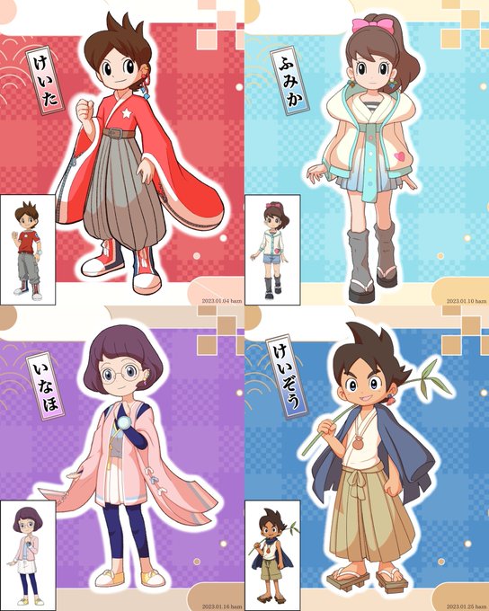 1 4 和服化まとめ (※公式絵トレス) #妖怪ウォッチ #イラスト #気ままに和服化 23/01/27 17:38
