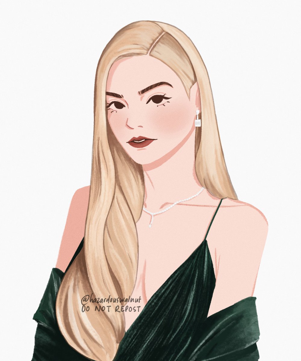 Art vs. Reference Anya Taylor-Joy is out here serving looks and I just had to draw her 💚 #zonakaryaid #artidn #ArtistOnTwitter #illustration #ArtistsofSEA #art #commissionsopen