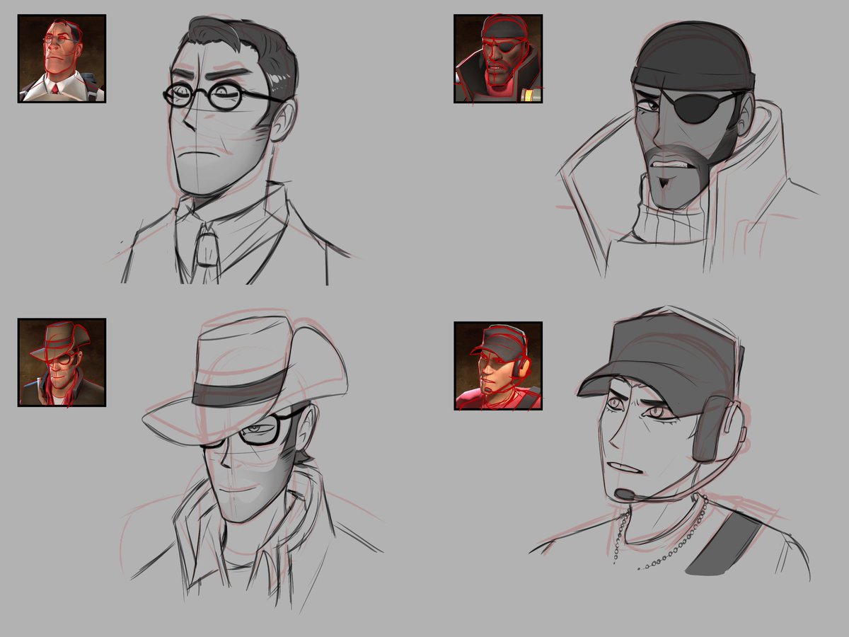 Some test sketch of tf2 characters to see how they would look in my style #TF2 #TF2fanart #fanart