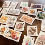 48 354 #C102 にもってく切手アクキーとミニアクリルブロック✨可愛い.... 夏コミの新刊セットに入れます〜! 23/08/04 10:18
