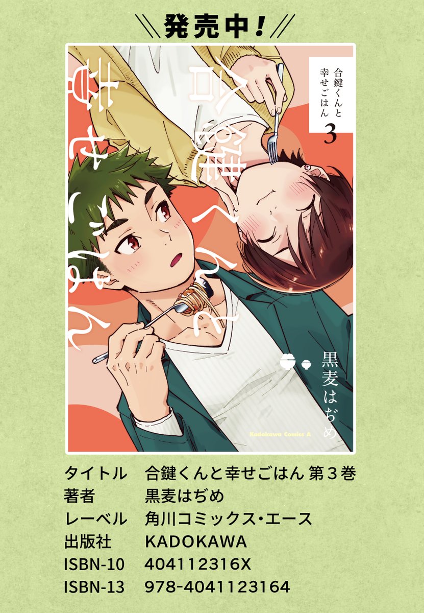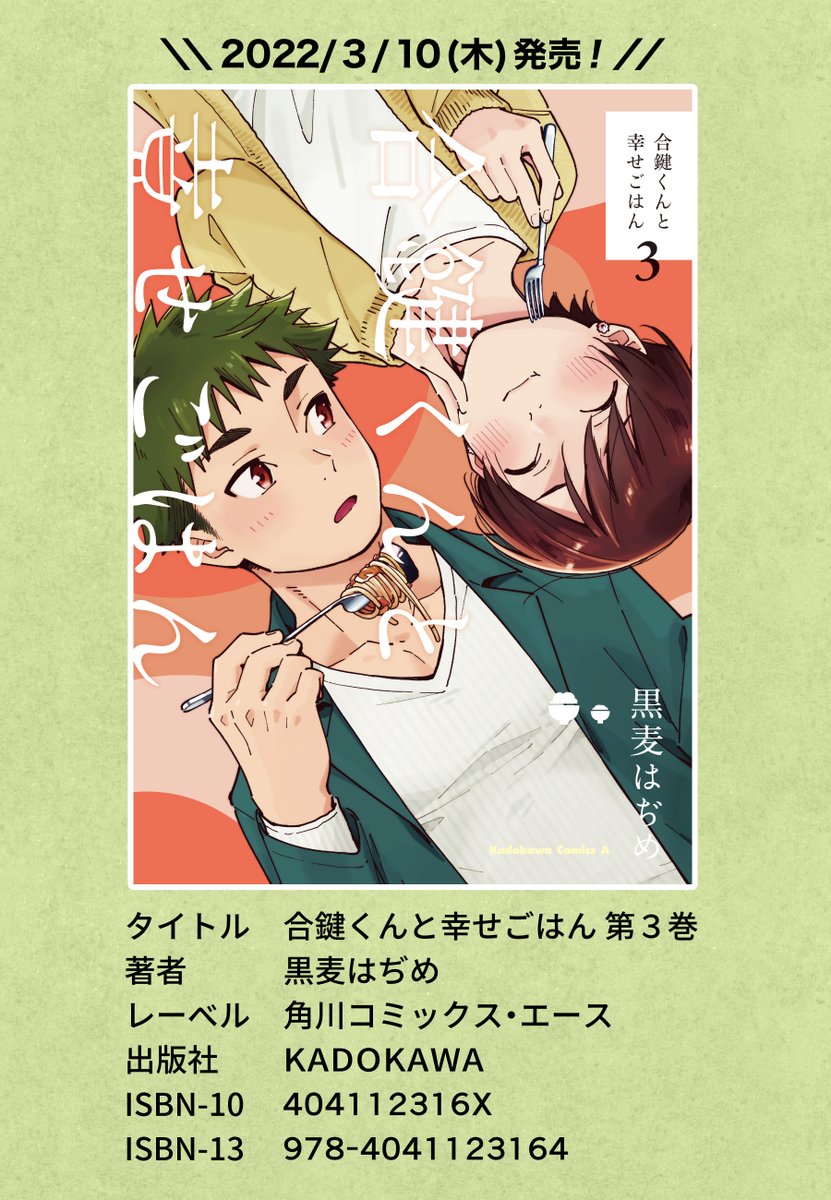 【単行本告知】 黒麦はぢめ作品 単行本2ヵ月連続刊行その②! #合鍵くんと幸せごはん 第4巻(完結)、2023年3月10日(金)発売! 収録内容:22話~28話、描き下ろし短編27.5話、他 □購入リンク集:kadokawa.co.jp/product/322206… ■Pixivコミック連載(最速):comic.pixiv.net/works/7126