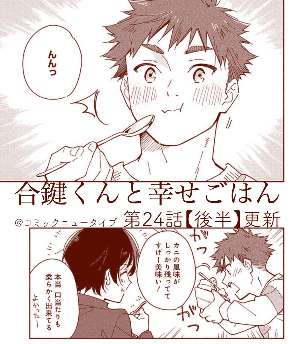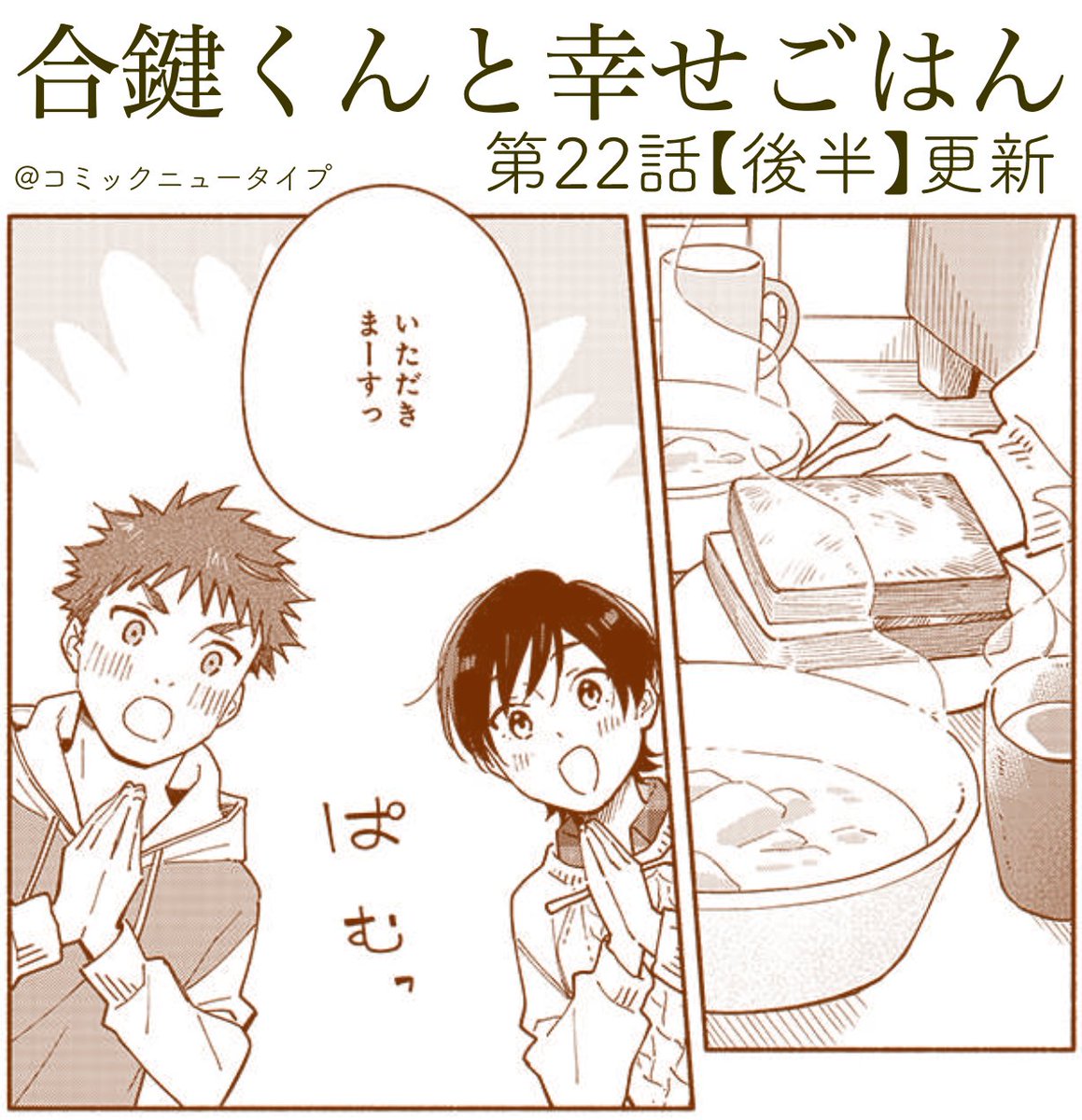 【#pixivコミック 更新】 #合鍵くんと幸せごはん 第24話[後半]更新しました! ■合鍵くんと幸せごはん第24話「冬三昧にはまだ遠い」後半→ comic.pixiv.net/viewer/stories… 今回はページ数やや少なめですが、その分ちょっとだけサービスです… ☆コミックス第3巻 発売中!→ web-ace.jp/comicnewtype/c…