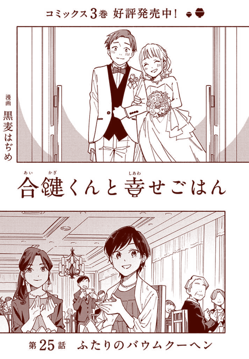 【#合鍵くんと幸せごはん 更新】 会社の後輩の結婚式、幸せそうなふたりを見て渚が思うことは。 ■第25話「ふたりのバウムクーヘン」前半 コミックNewtype → comic.webnewtype.com/contents/kagi/… pixivコミック → comic.pixiv.net/works/7126 ☆コミックス第3巻 発売中!→ web-ace.jp/comicnewtype/c…