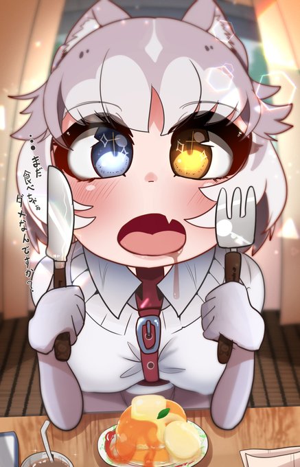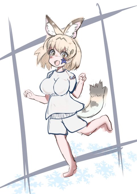21 72 リハビリ中に描いたホワイトサーバルちゃんです 服着せておきました 23/03/06 22:38