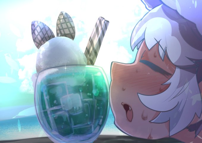 55 165 暑いから、冷たいキタキツネちゃんを描きました 22/08/06 19:01