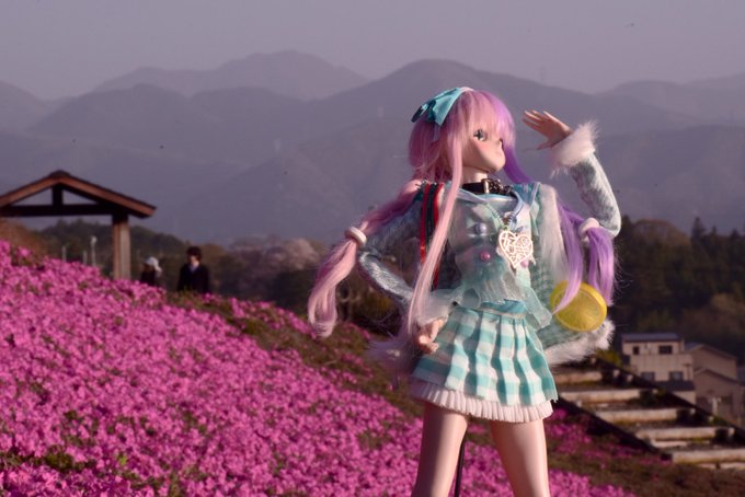 #橘ありす 「桜の名所・岐阜県 #霞間ヶ渓 に来ています」 #ノードール・ノーライフ #今夜のドール撮影120分一本勝負 #うちのこに癒され24時間 #深夜のドール撮影素敵文1440分1本勝負 #デレマスドール部 ありす「芝桜が満開ですよ♪」 フォロワーさん「桜は!?」