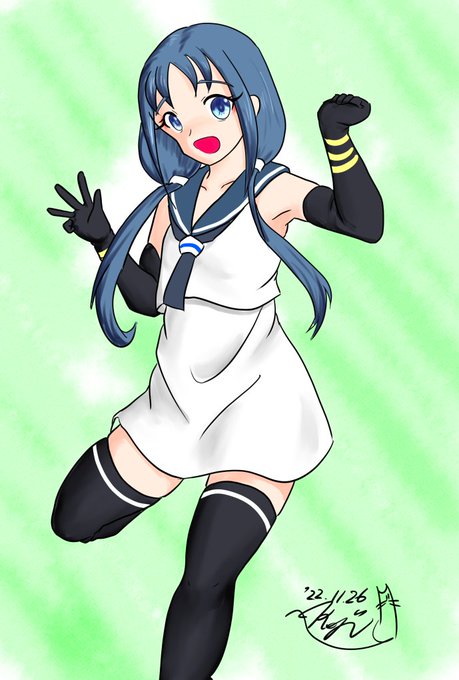 #艦これ版深夜の真剣お絵描き60分一本勝負 #艦これ版真剣お絵描き60分一本勝負_20230609 #清霜 元気な駆逐艦さんです。活躍してくれてますが、戦艦にはまだなれていません。清バニさん。