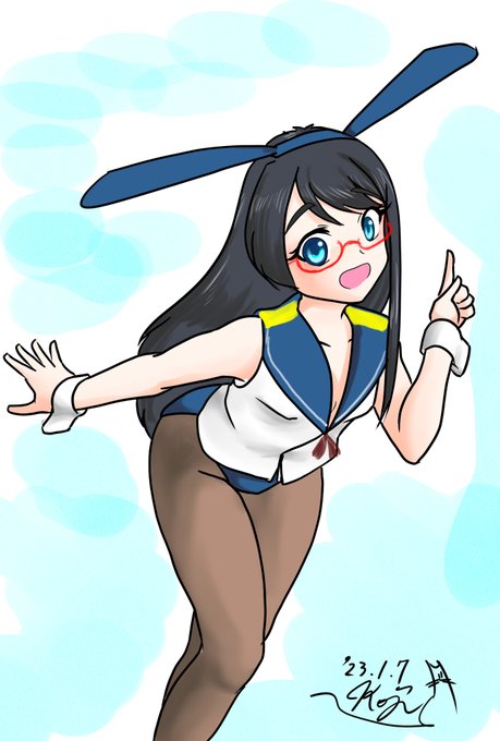 #艦これ版深夜の真剣お絵描き60分一本勝負 #艦これ版真剣お絵描き60分一本勝負_20230402 #大淀 安定のバニ淀さん。笑顔で報告してくれるのはうれしいですが、E2は残念ながらレベルを落としてクリアしました。(友軍くるの待てませんでした・・・。)